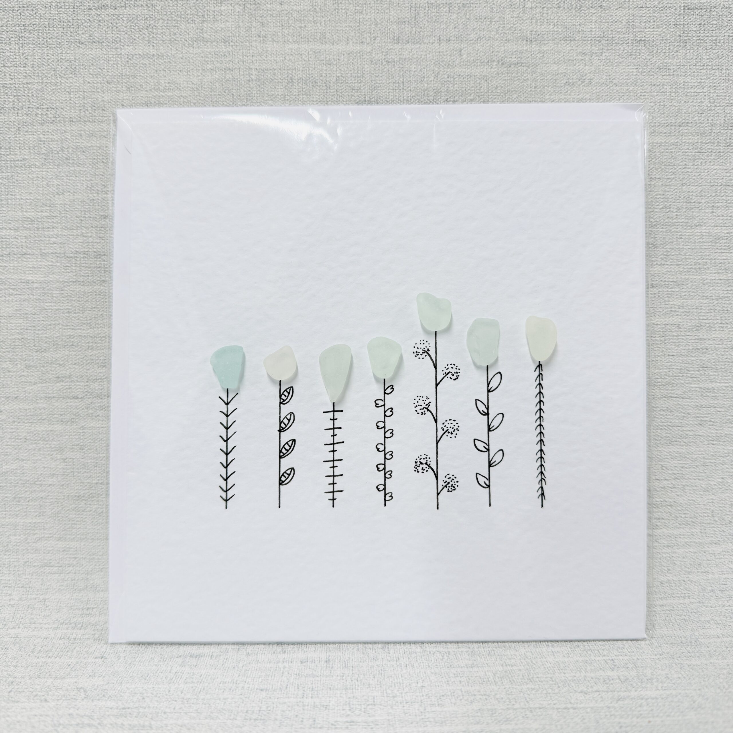Celebrate with a touch of coastal magic. Each card in this collection is handcrafted using Manx sea glass, gathered from the shores of the Isle of Man. These treasures are transformed into charming greetings cards.