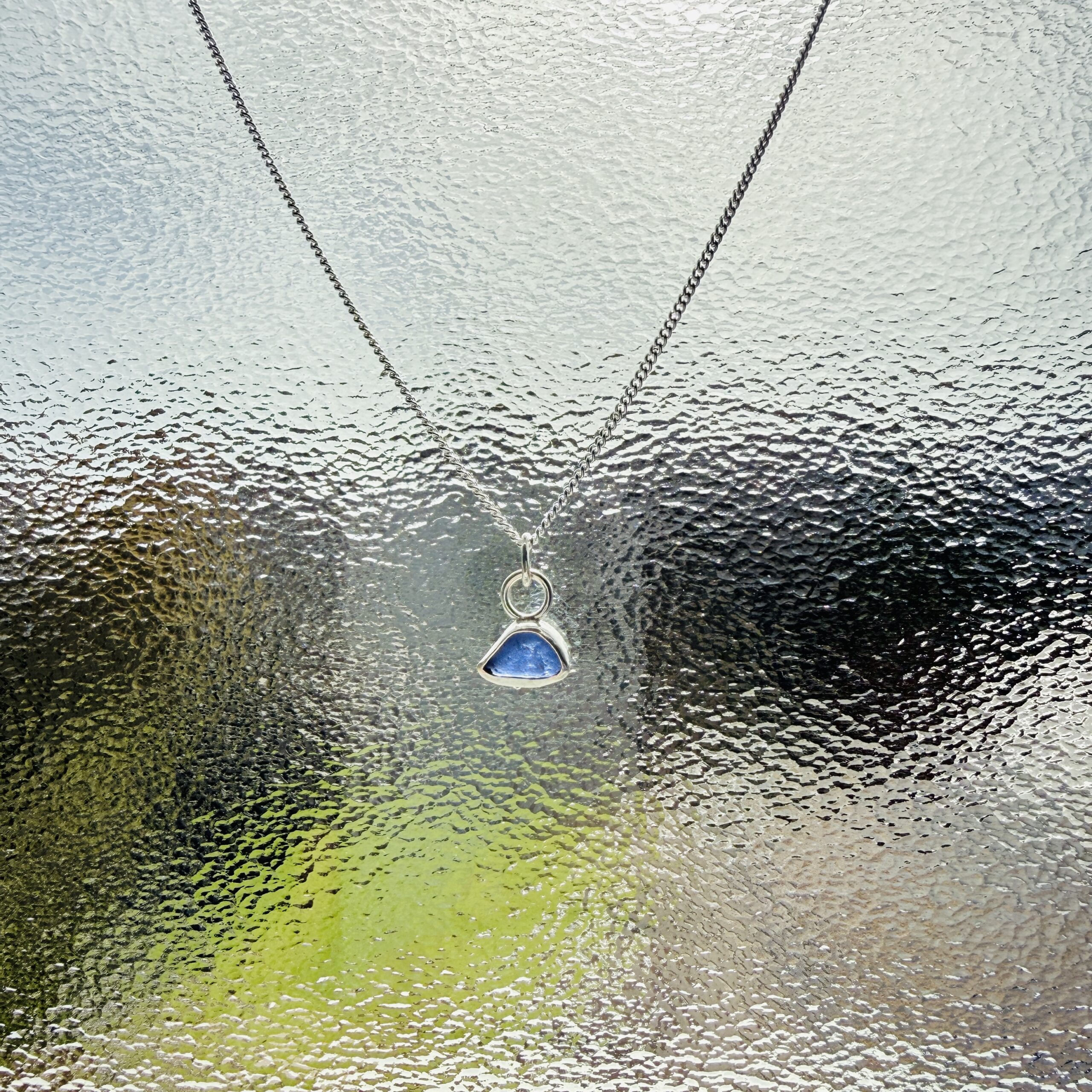 This necklace has been handmade using an authentic piece of purple sea glass which has been created using a backless bezel setting. When light shines through the pendant it truly showcases the stunning colour of the piece of sea glass.